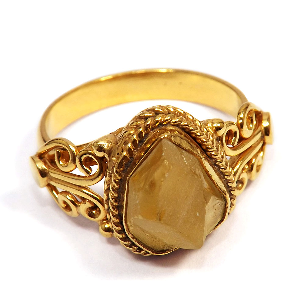 Pretty Look Citrine Rough Gemstone Made In Brass Gold Plated Ring..