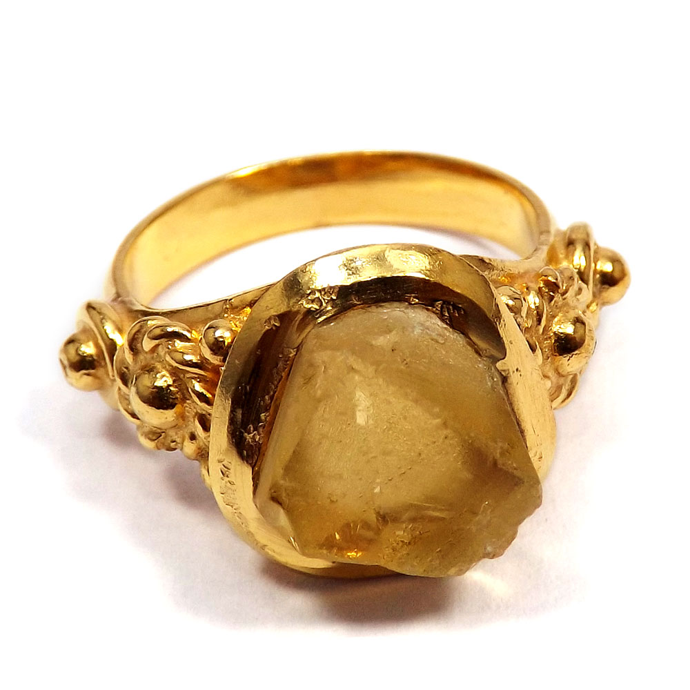 Natural Citrine Rough Gemstone Gold Plated Brass Designer Ring..