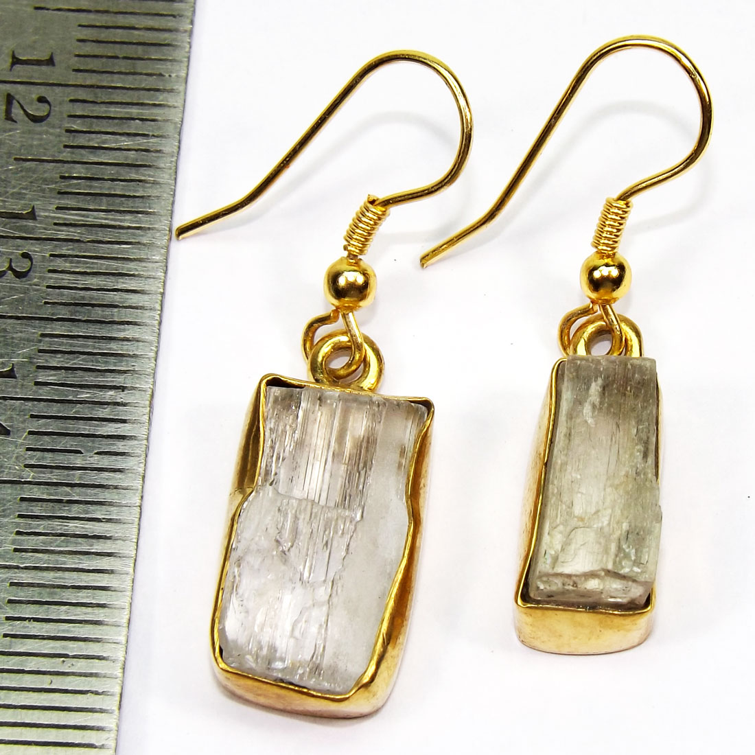 Rough Gemstone Brass with Gold Plated Vermeil Earrings-PBE988