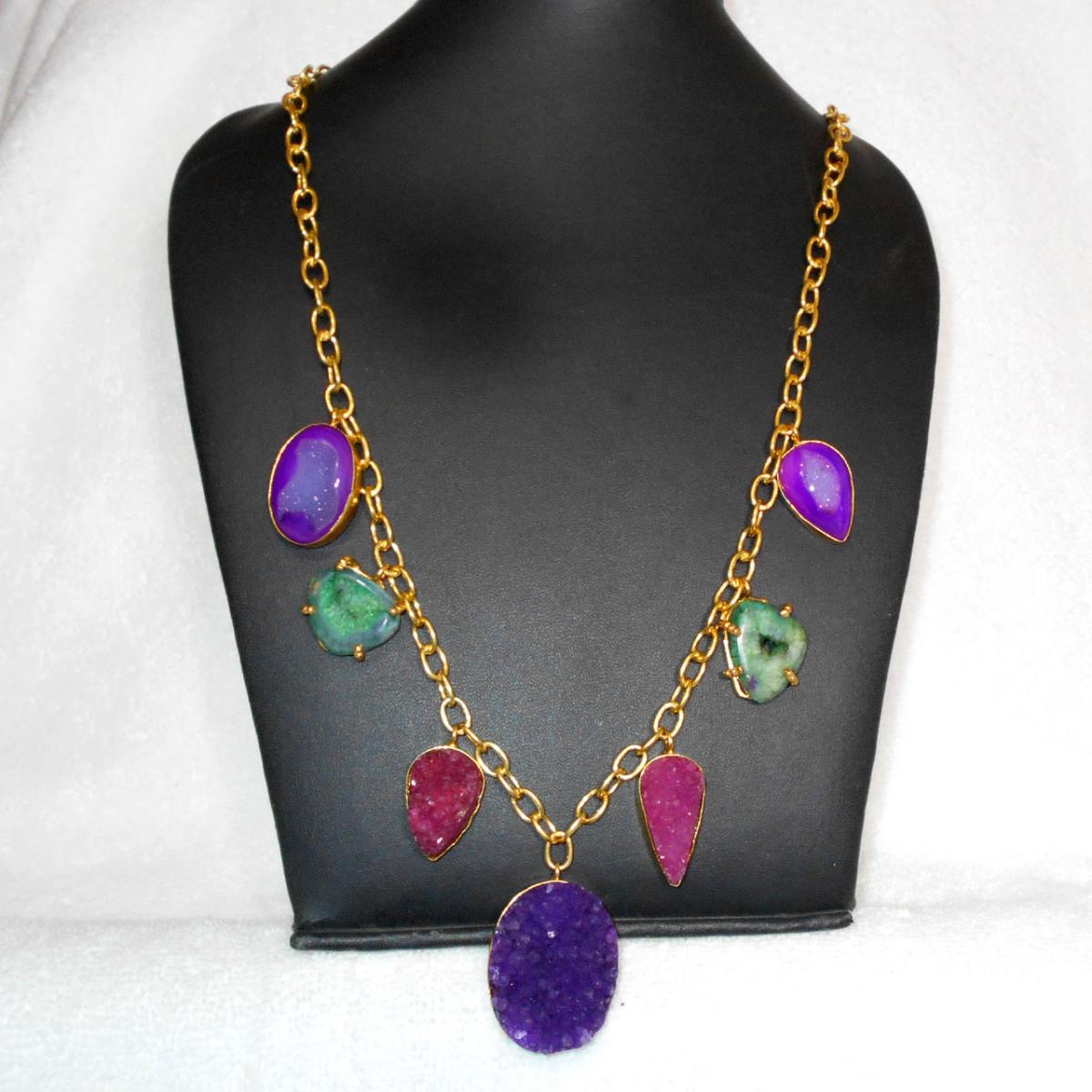 82 Cms Drusy Necklace B - BSN995-Beautiful Chunky style Drusy Necklace gold plating over B