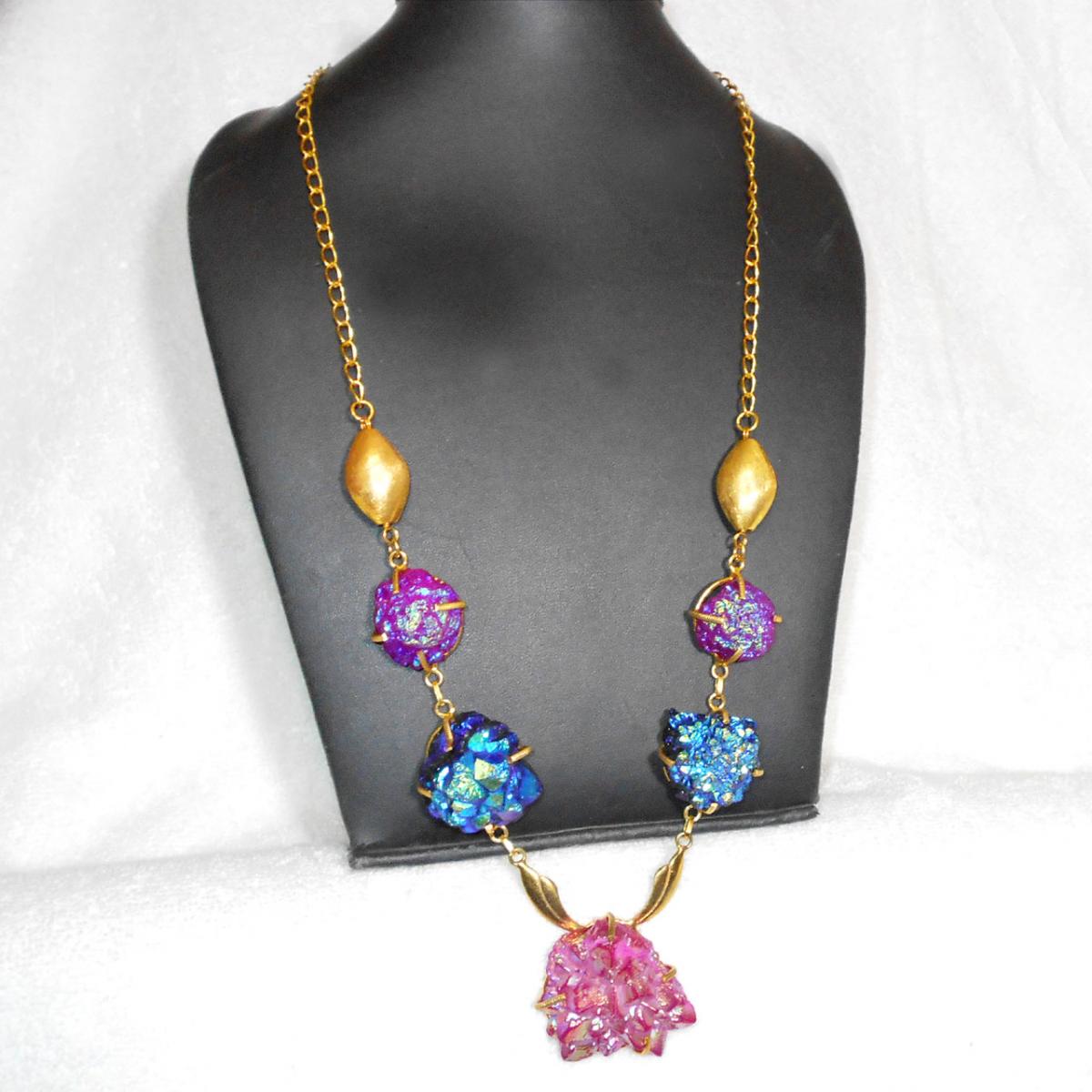 72 Cms Drusy Necklace B - BSN996- Drusy Necklace gold plating over Brass