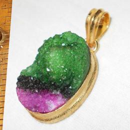 Color Drusy F - PSB945-Gold vermeil brush finish Drusy gemstone Pendants with Br