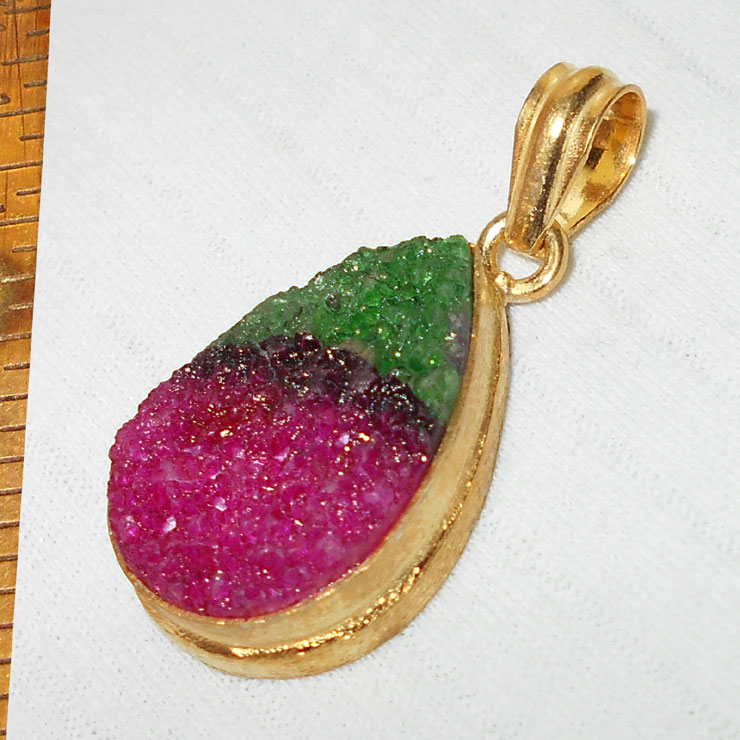 Gold vermeil brushed matti finish Drusy gems with brass fashion costume Pendants-PSB945..