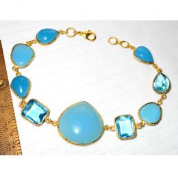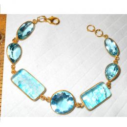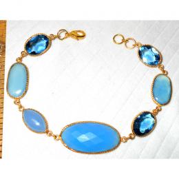 Opolite, Blue Topaz hydro glass A - BJB993-Gorgeous Bezel Bracelets with gold plated over Brass whol