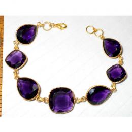 Amethyst hydro glass F - BJB993-Gorgeous Bezel Bracelets with gold plated over Brass whol