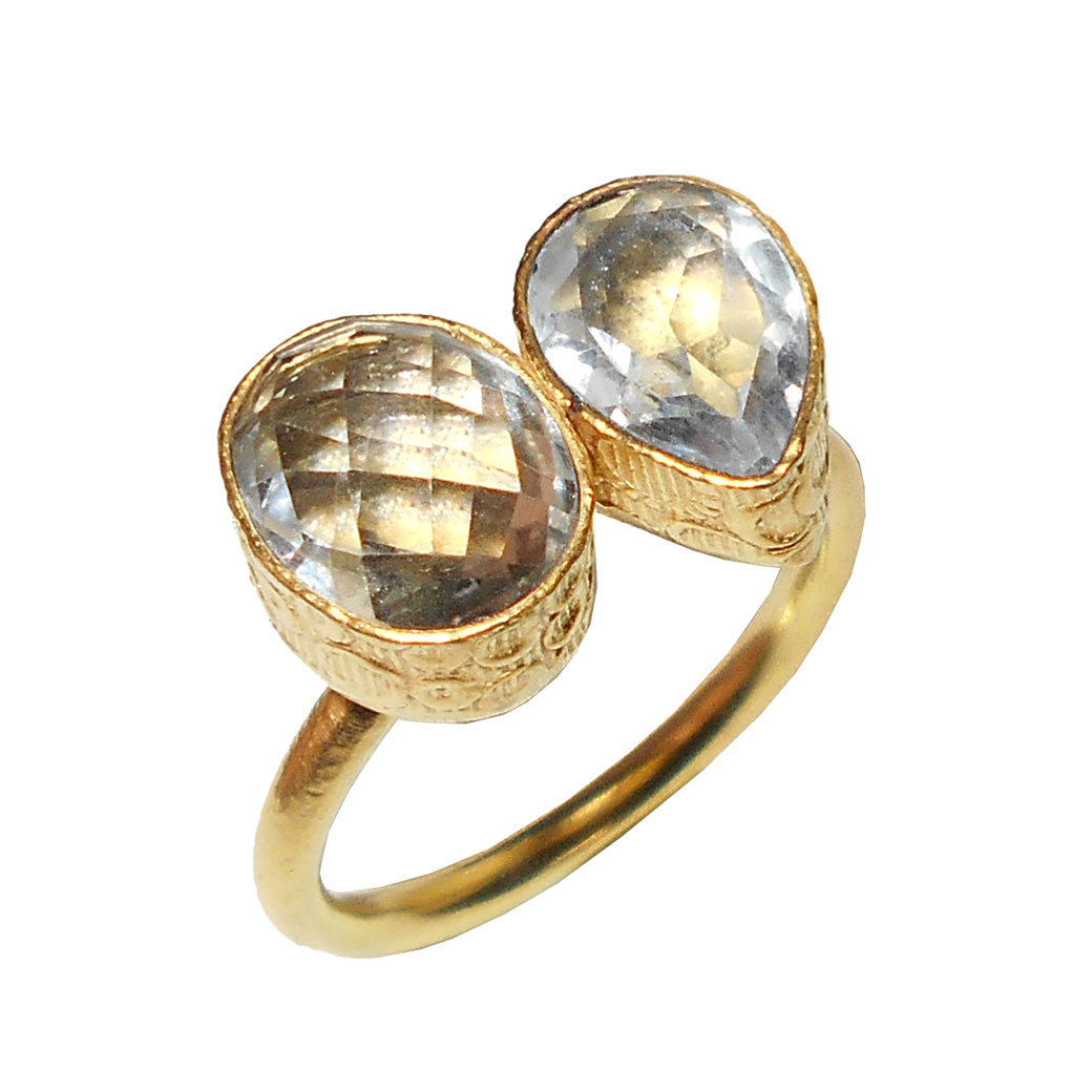 Crystal quartz cut B - PR982- Costume fashion Brass gold plated wholesale Rings collect