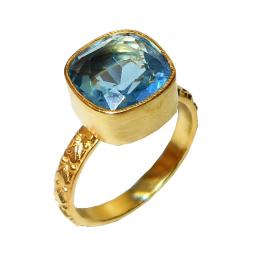 Blue Hydro glass cut G - PR987- Beautiful Handmade Rings with Yellow gold & Rose gold ver