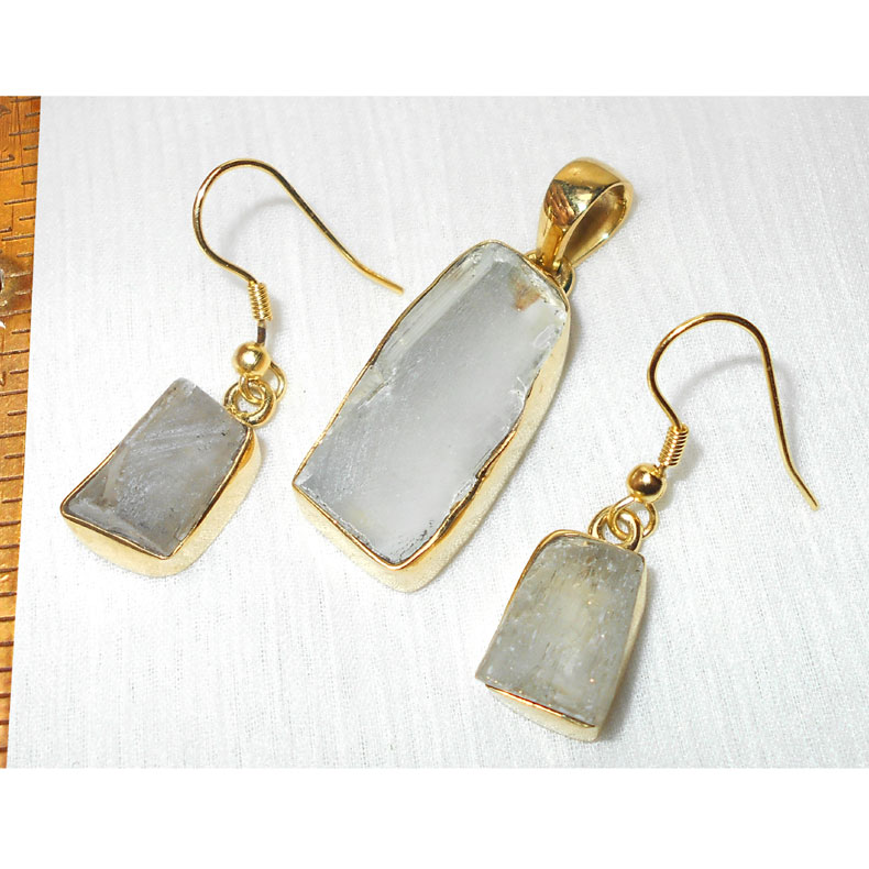 Crystal quartz Rough D - SET989- Beautiful Kunjite row gems with Brass imitation fashion