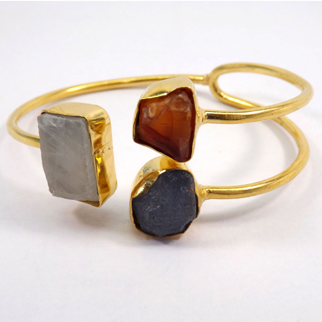 Crystal Quartz,Carnelian &Tanzanite A - BN961-Gorgeous Designer Gemstones Rough Brass Bangles