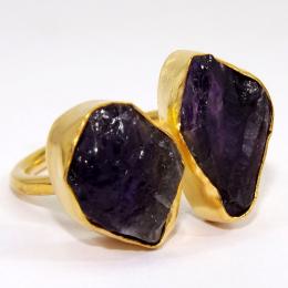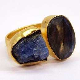 Rough Gemstone Brass with Gold Plated Adjustable Rings-BRR988..
