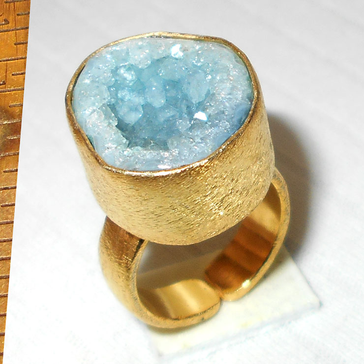 Wholesale gold vermeil Drusy gemstone Rings wholesale-DBR982..