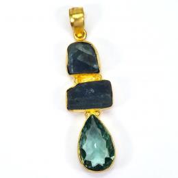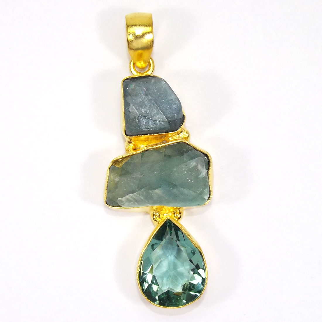 Fluorite Rough and Hydro Glass Cut F - RBJ913-Brass with Multi Rough Gemstone Fashion Pendants