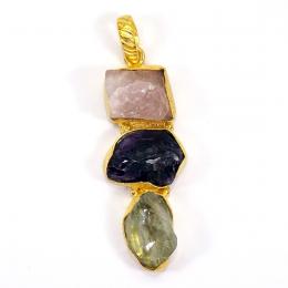 Rose Quartz Amethyst and Green Amethyst Rough G - RBJ913-Brass with Multi Rough Gemstone Fashion Pendants