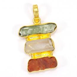 Green Kynite Crystal and Carnelian Rough N - RBJ913-Brass with Multi Rough Gemstone Fashion Pendants