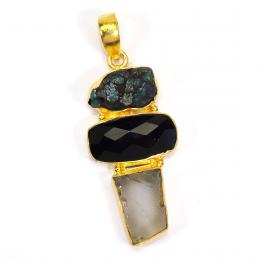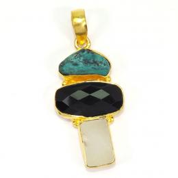 Tibet Turquoise Crystal Rough and Black Onyx Cut E - RBJ913-Brass with Multi Rough Gemstone Fashion Pendants