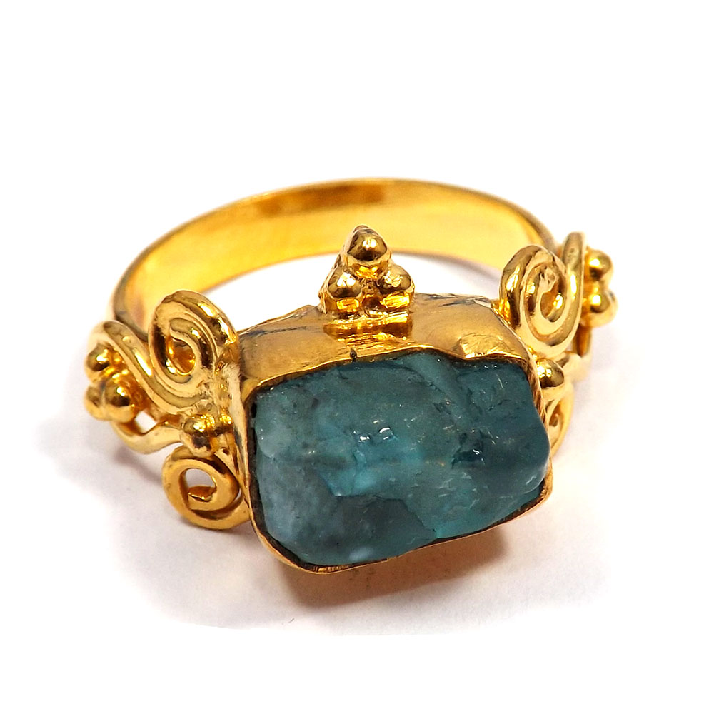 Indian Factory Made Rough Stone Gold Plated Brass Ring..