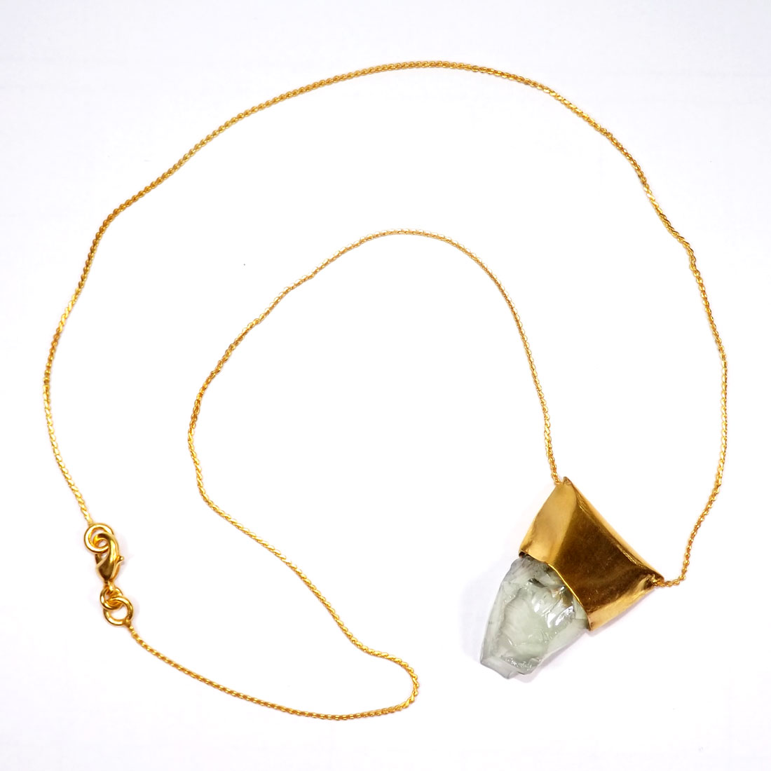 Crystal Quartz Rough H - RSN999-Rough Stone Made in Brass Handmade Chain Necklaces