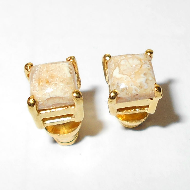 Fossil coral cab H - STD982- 5 mm Square Yellow gold vermeil Stud Earrings wholesale