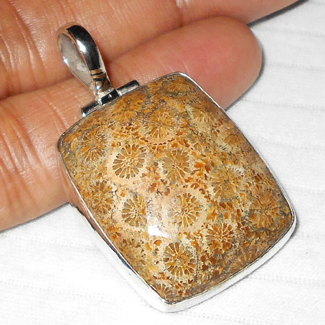 Fossil coral cut O - WMP956- German silver Pendants wholesale India