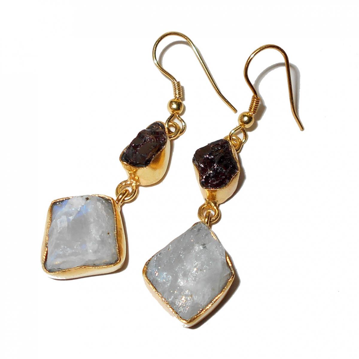 Garnet, Rainbow moonstone G - RBE973- Fabulous designer fashion Earrings, Fashion jewelry fact