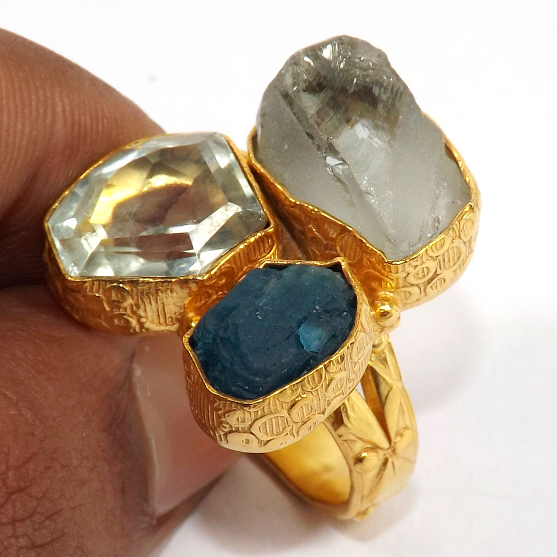 Gorgeous Gemstones Designer With Gold Plated Rough Brass Chunky Rings-BCR979..