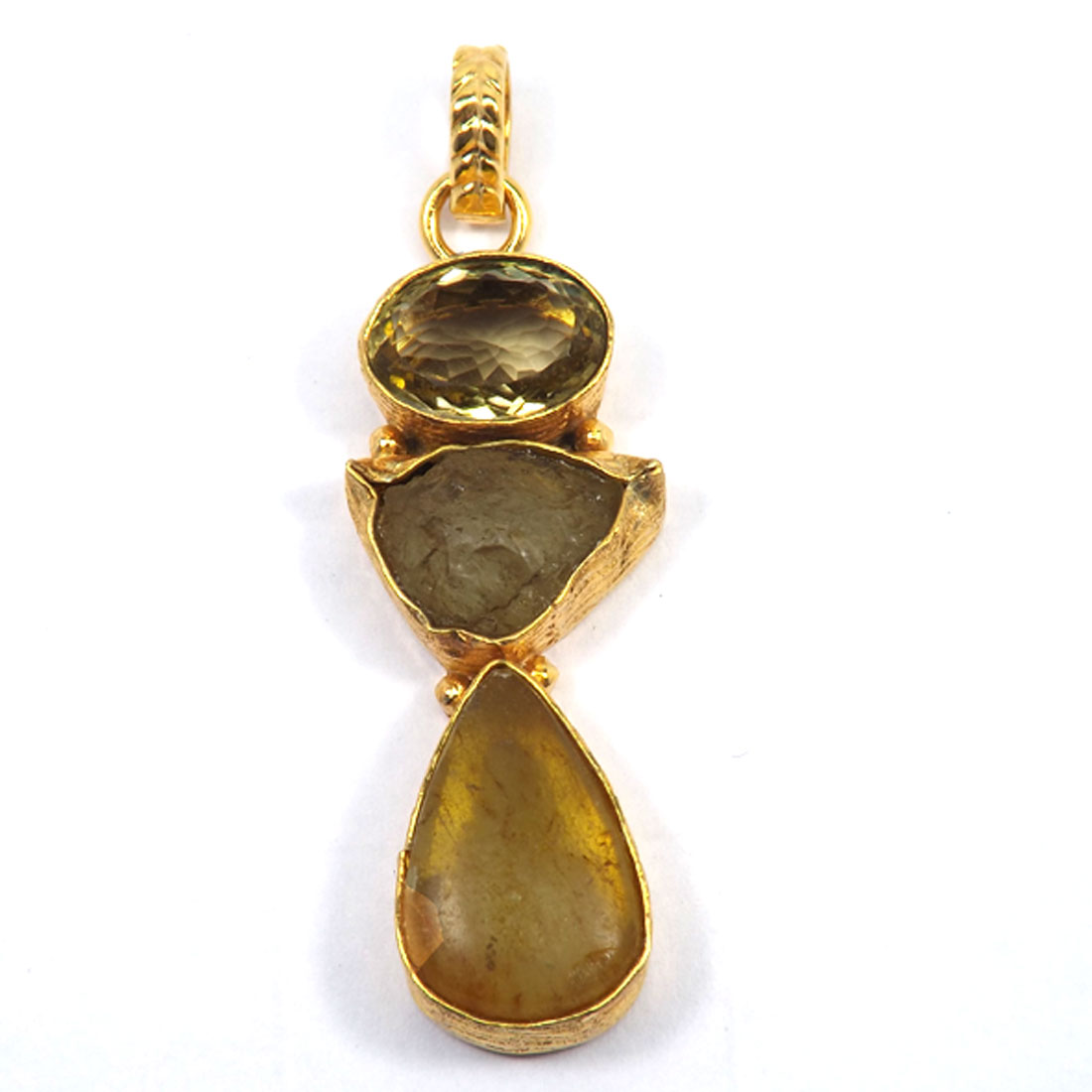Beautiful Designer Three Stones With Gold Plating Rough Brass Pendant-RBJ902..