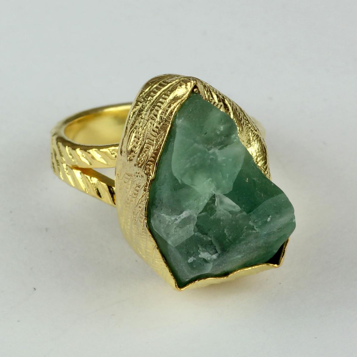 GORGEOUS DESIGN GREEN APATITE ROUGH BRASS RING MADE IN INDIA HANDMADE-BRR956..