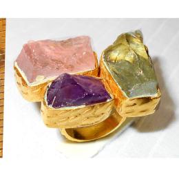 Amethyst, Carnelian, Rose quartz B - RBJ959- Crystal heart fashion Rings with gold plated over Brass