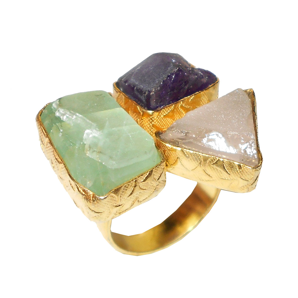 Green fluorite, Amethyst, Rose quartz A - RBR942- Semiprecious Raw gemstone Cluster Rings