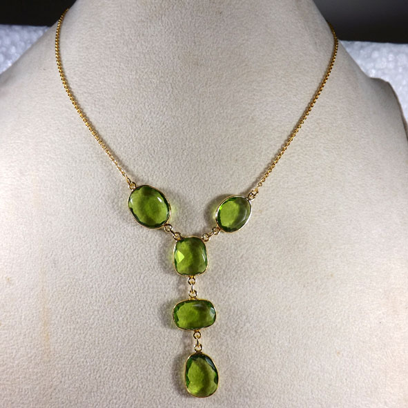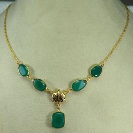 Green Onyx O - BGN972-Indian Designer Gemstones Beautiful Brass Bezel Necklace