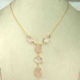 Rose Quartz Hydro Cut G - BGN972-Indian Designer Gemstones Beautiful Brass Bezel Necklace