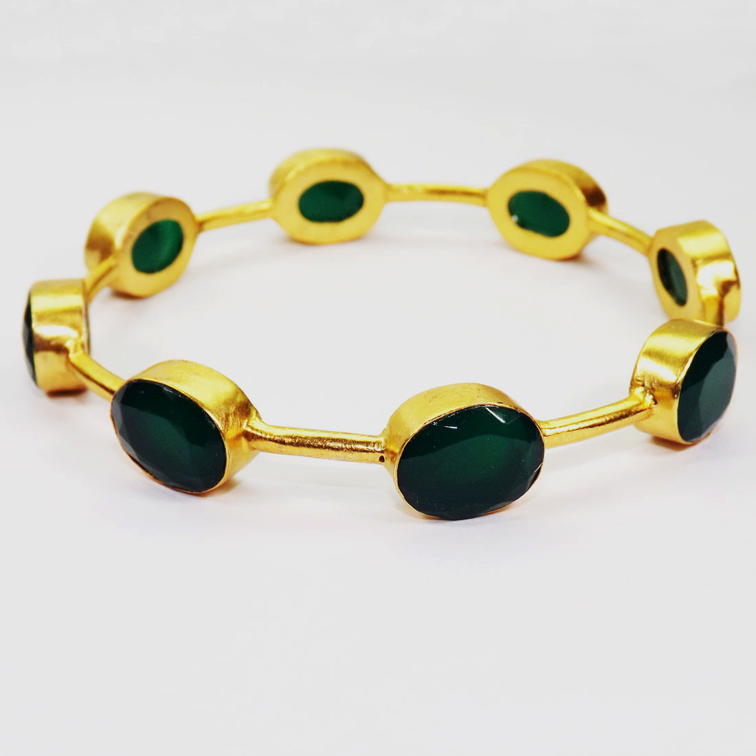 Green Hydro Glass E - BN967-Mix Cab and Cut Gemstone Brass Bracelet Bangles