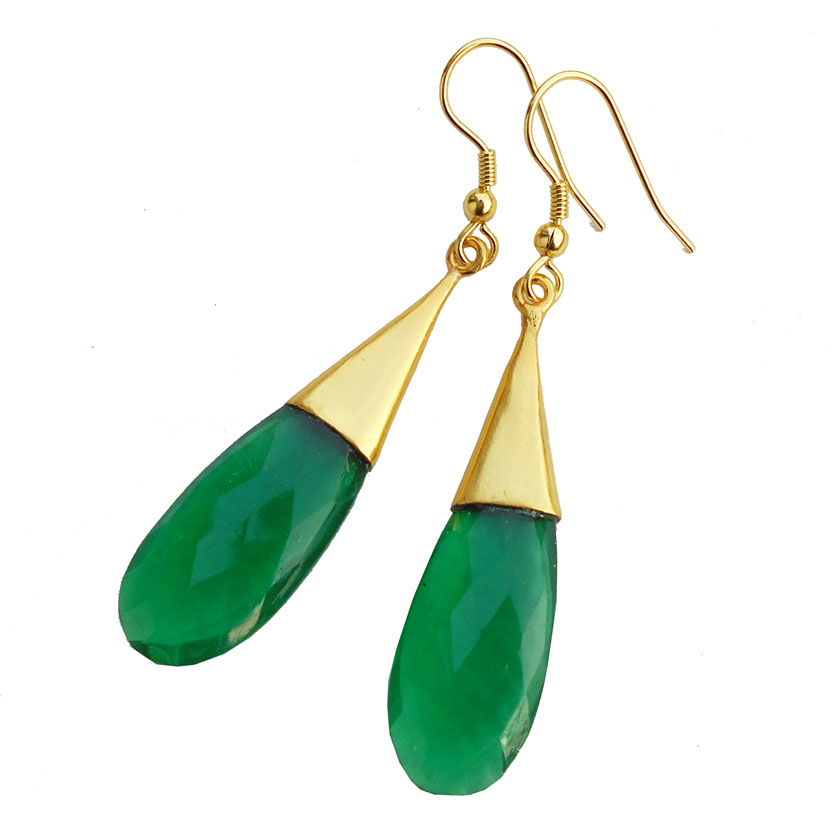 Green hydro glass cut C - BSE972- Beautiful Drop Earrings with gold vermeil
