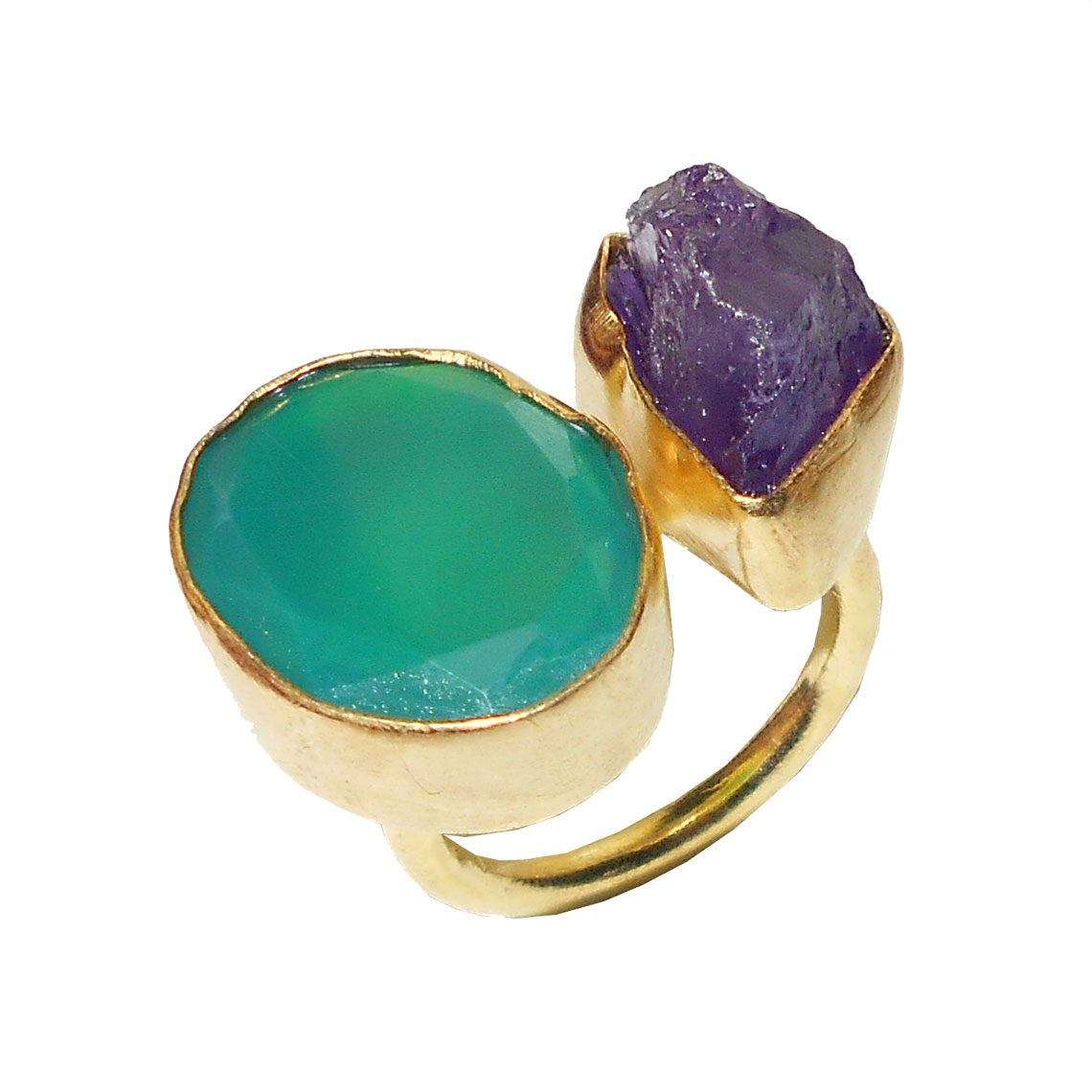 Green onyx, Amethyst B - RBR922- Modern Fashion Trendy costume Rings with Brass wholesale