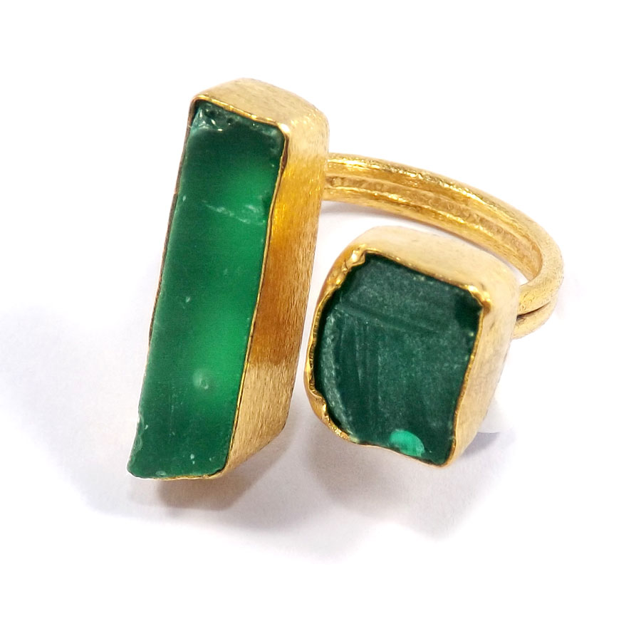 Awesome Rough Gemstone With Gold Plated Brass Ring-BRR918..