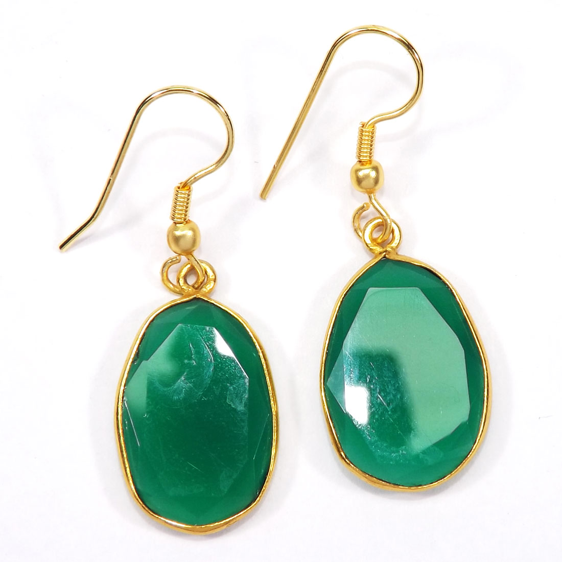 Green Onyx Cut Gemstone Brass Bezal Dangle Earrings-BJS897..