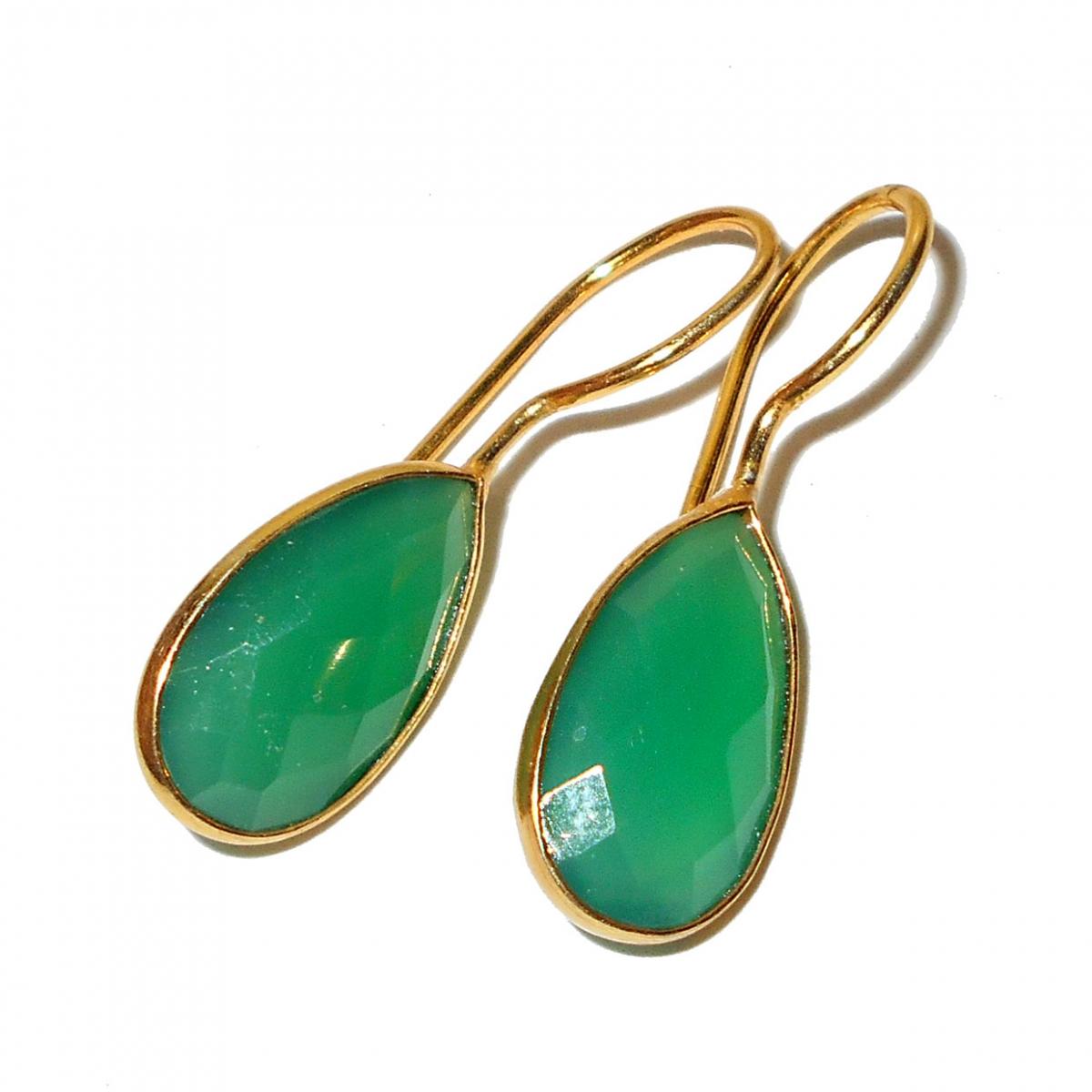 Green onyx cut O - BJS924- Summer collection Fashion gold vermeil Brass Earrings wh