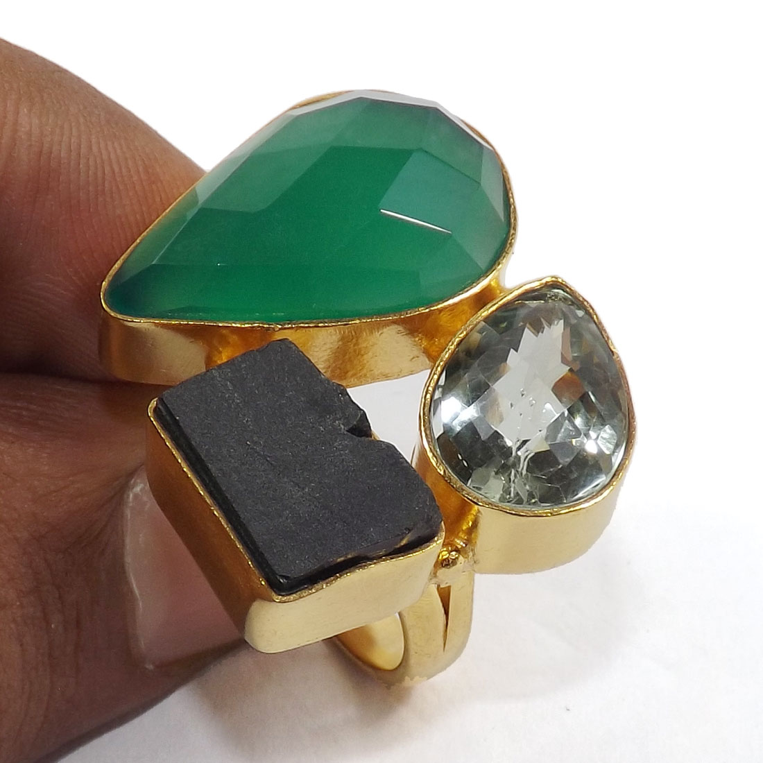 Green Onyx Cut,Green Amaethyst & Black Tourmaline O - BCR981-Amazing New Design Wholesale Handmade Rough Brass Chunky