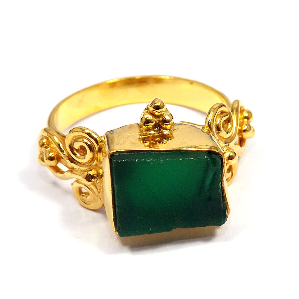 Natural Green Onyx Rough Brass Gold Plated Ring..