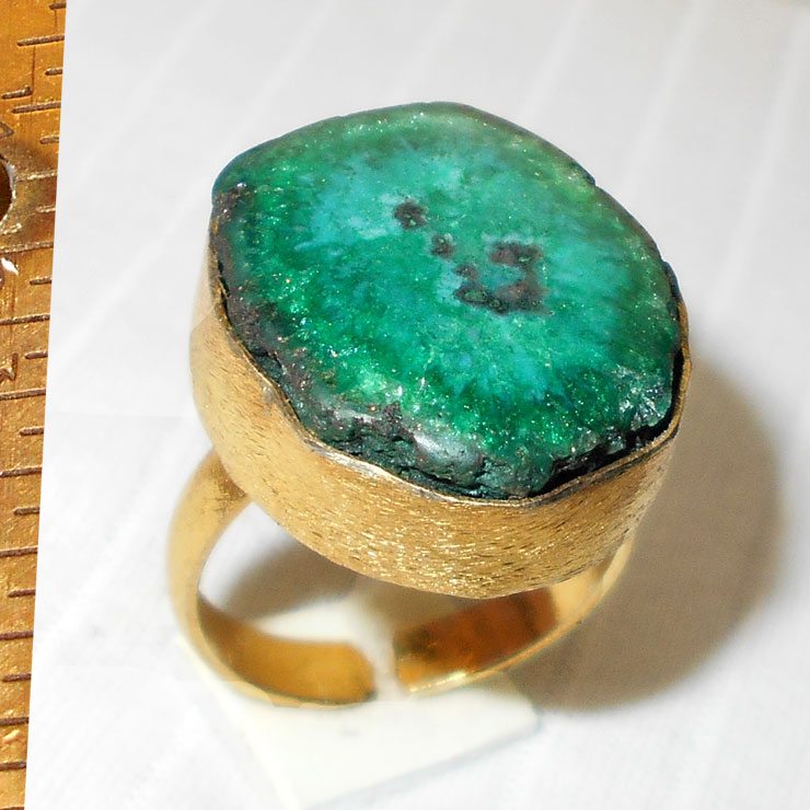 Green solar drusy C - DBR974-Green solar drusy gems with Brass gold plated matti finis