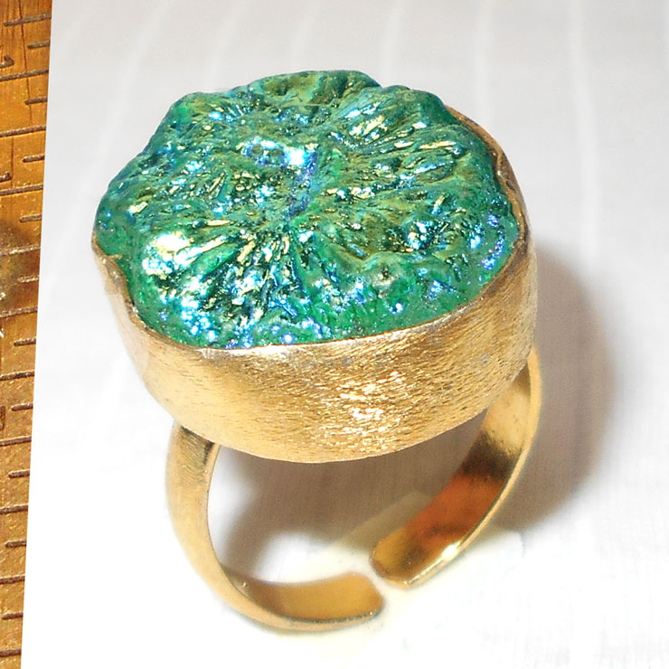Green Titanium drusy B - DBR977-Modern fashion trend fashion costume design Rings, Jewelr
