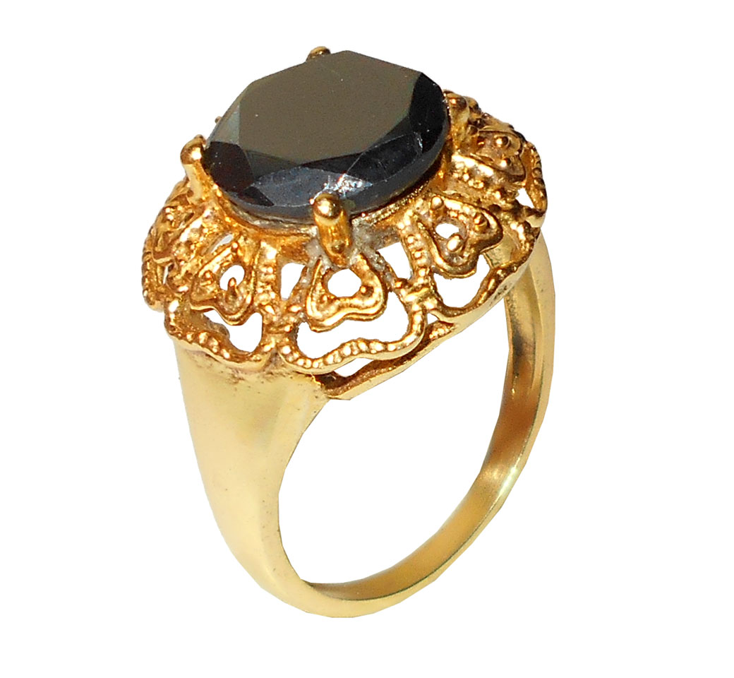 Hematite Cut D - BSR857-Beautful Prong Rings with gold vermeil over Brass