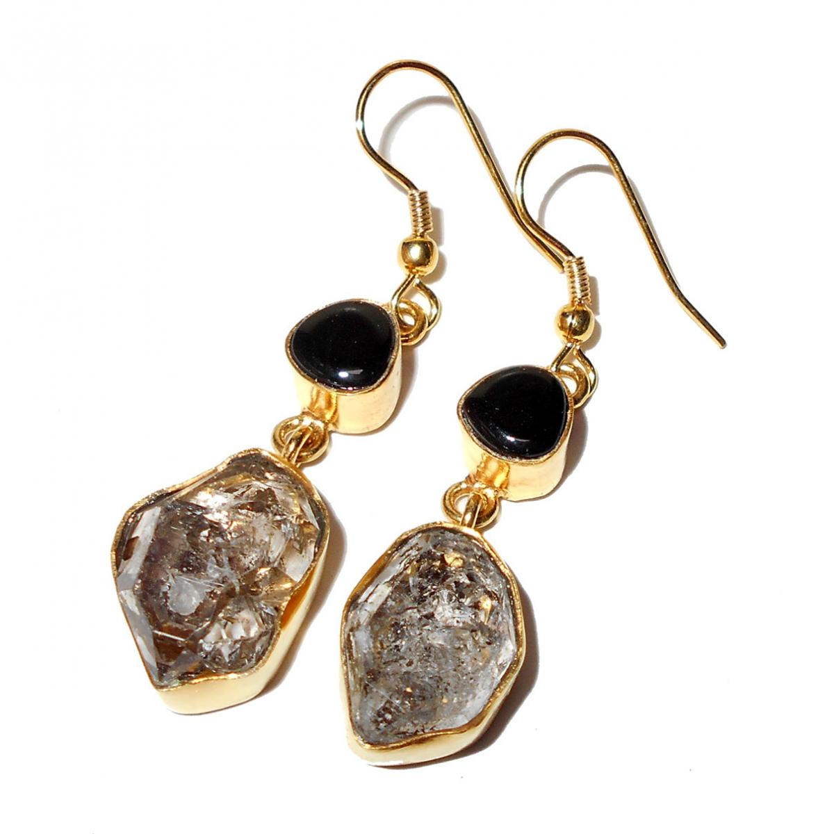 Herkimer Diamond, Black onyx D - RBE969- Color gemstone fashion Earrings, Rock style fashion jewe