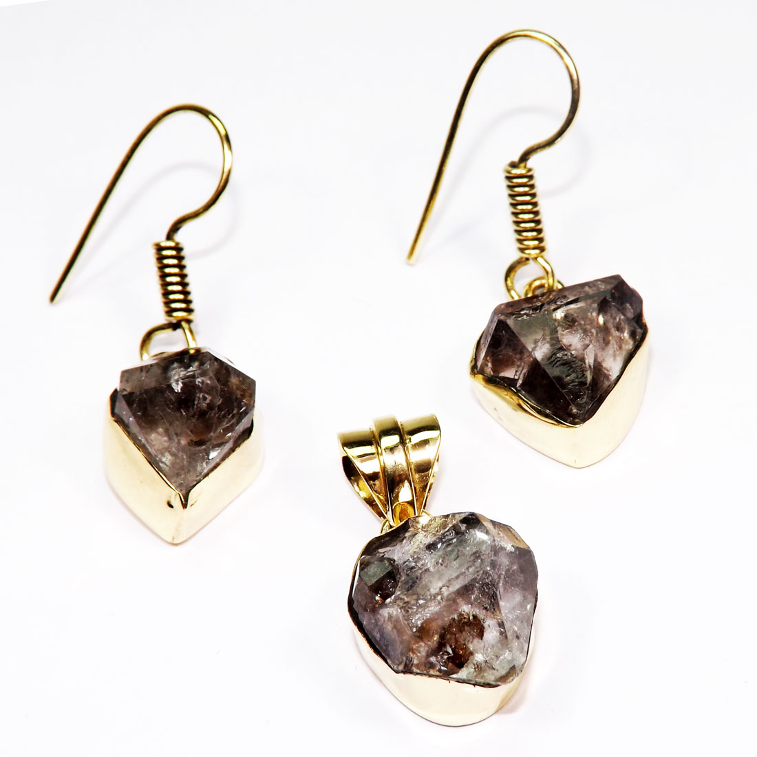 Rough Herkimer Diamond Made in Brass with Gold Plated Vermeil Earring Pendant Set-SET982