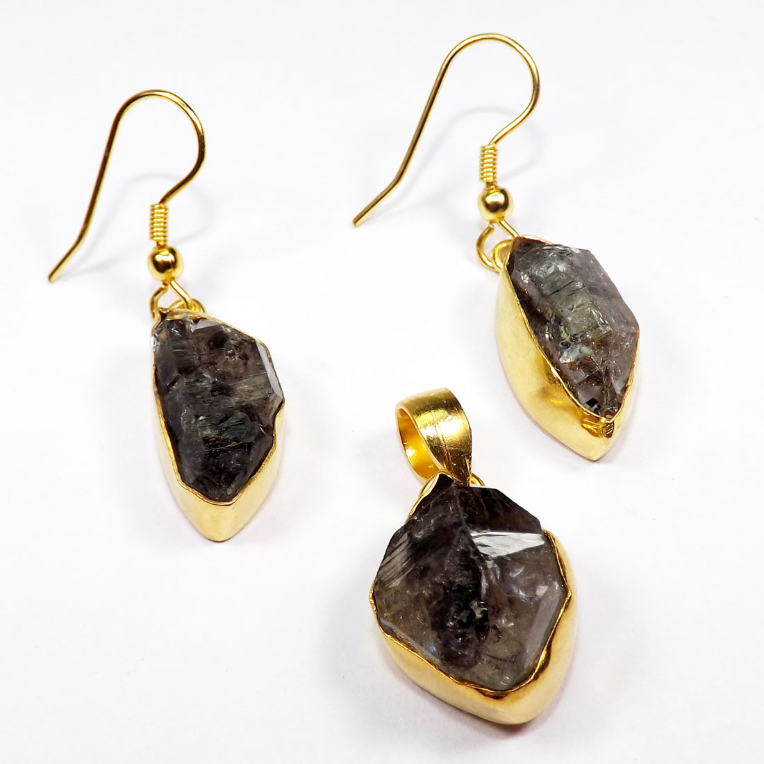 Rough Herkimer Diamond Made in Brass with Gold Plated Vermeil Earring Pendant Set-SET982
