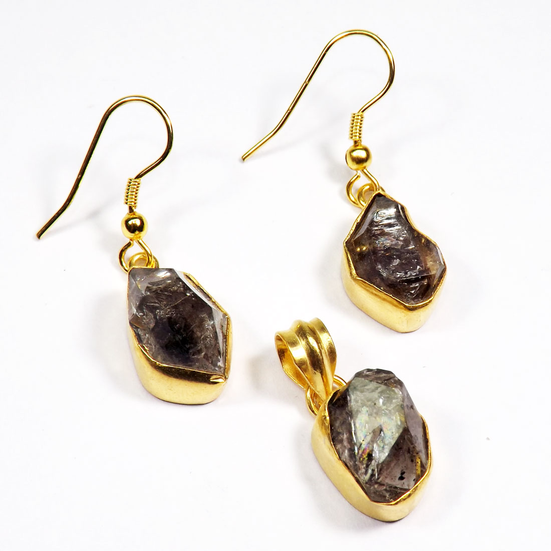 Rough Herkimer Diamond Made in Brass with Gold Plated Vermeil Earring Pendant Set-SET982