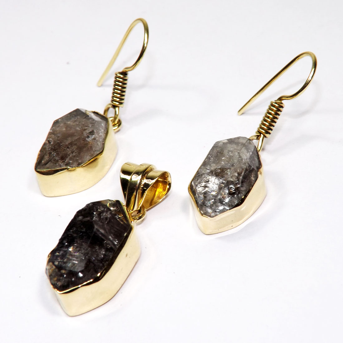Rough Herkimer Diamond Gemstone Made in Brass with Gold Plated Vermeil Earring Pendant Set-SET986..