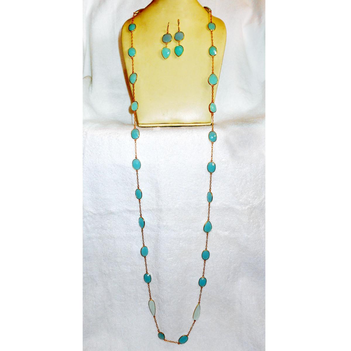 56.5 Inch Blue hydro quartz C - BSN997- 75.2 inch Beautiful Bejal Necklace with Brass with Gold
