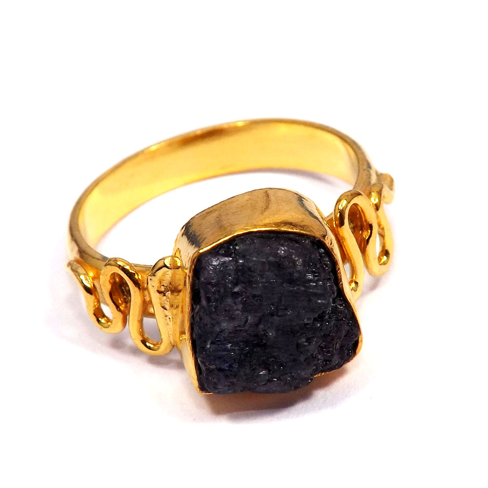 Natural Iolite Rough Stone Gold Plated Brass Designer Ring..