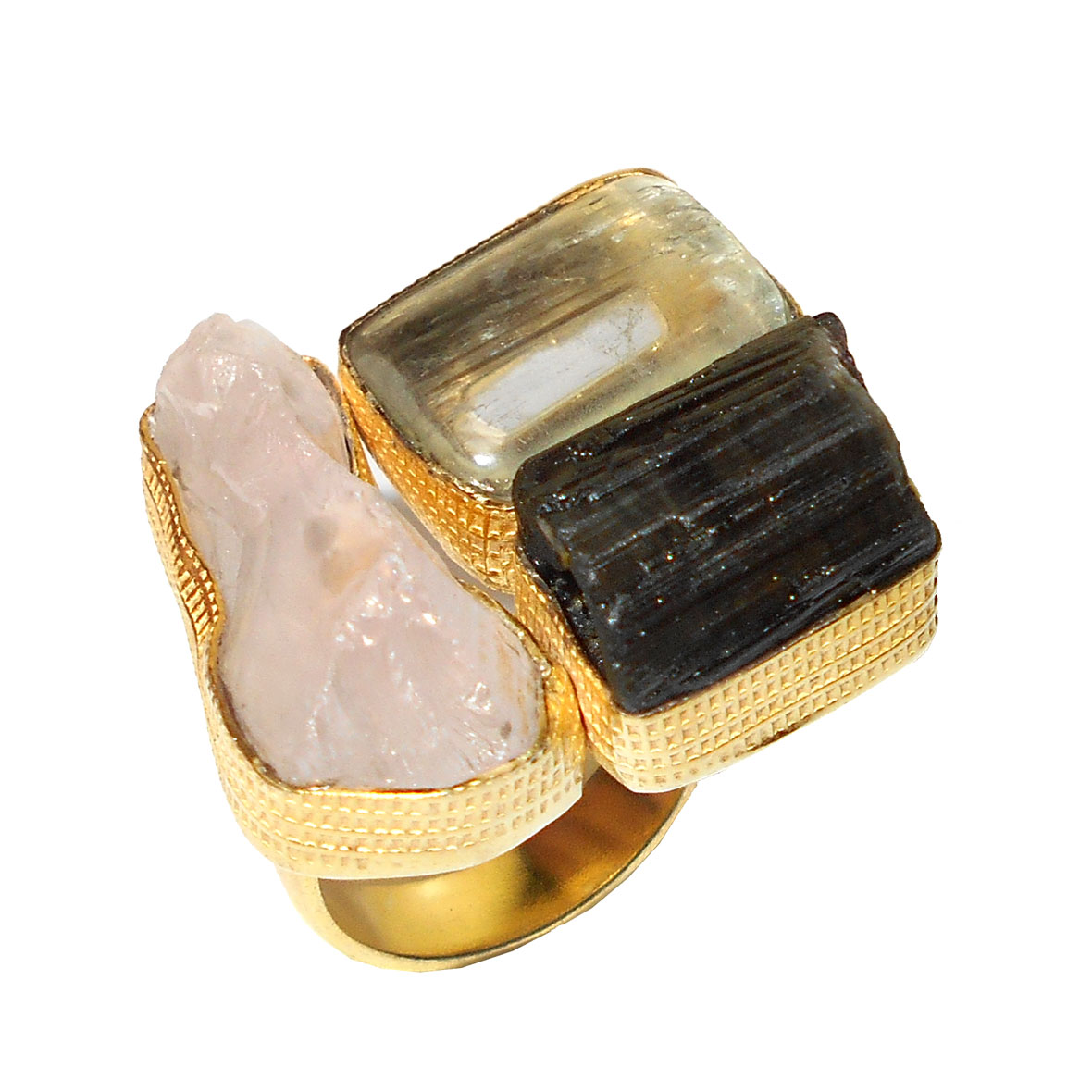 Kunjite, Black Tourmaline, Rose quartz H - RBR950- Beautiful Cluster fashion costume Brass Rings wholesale